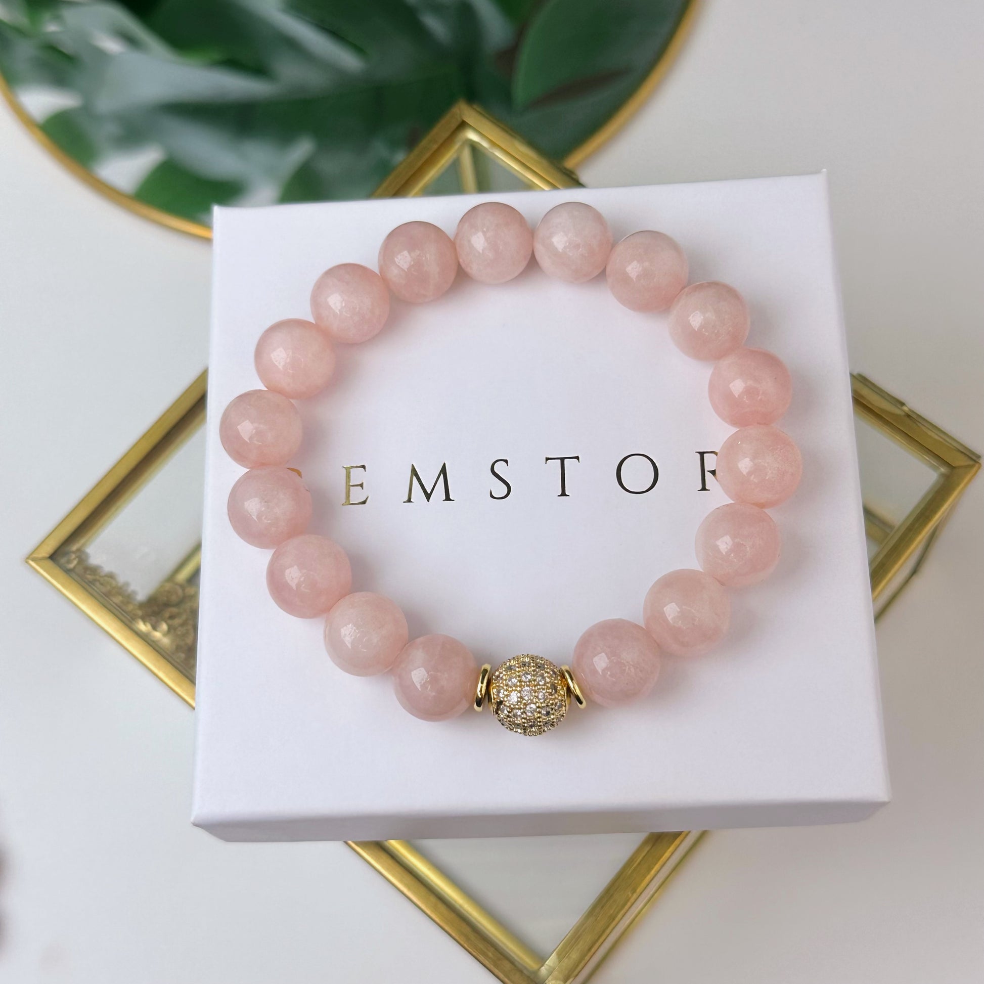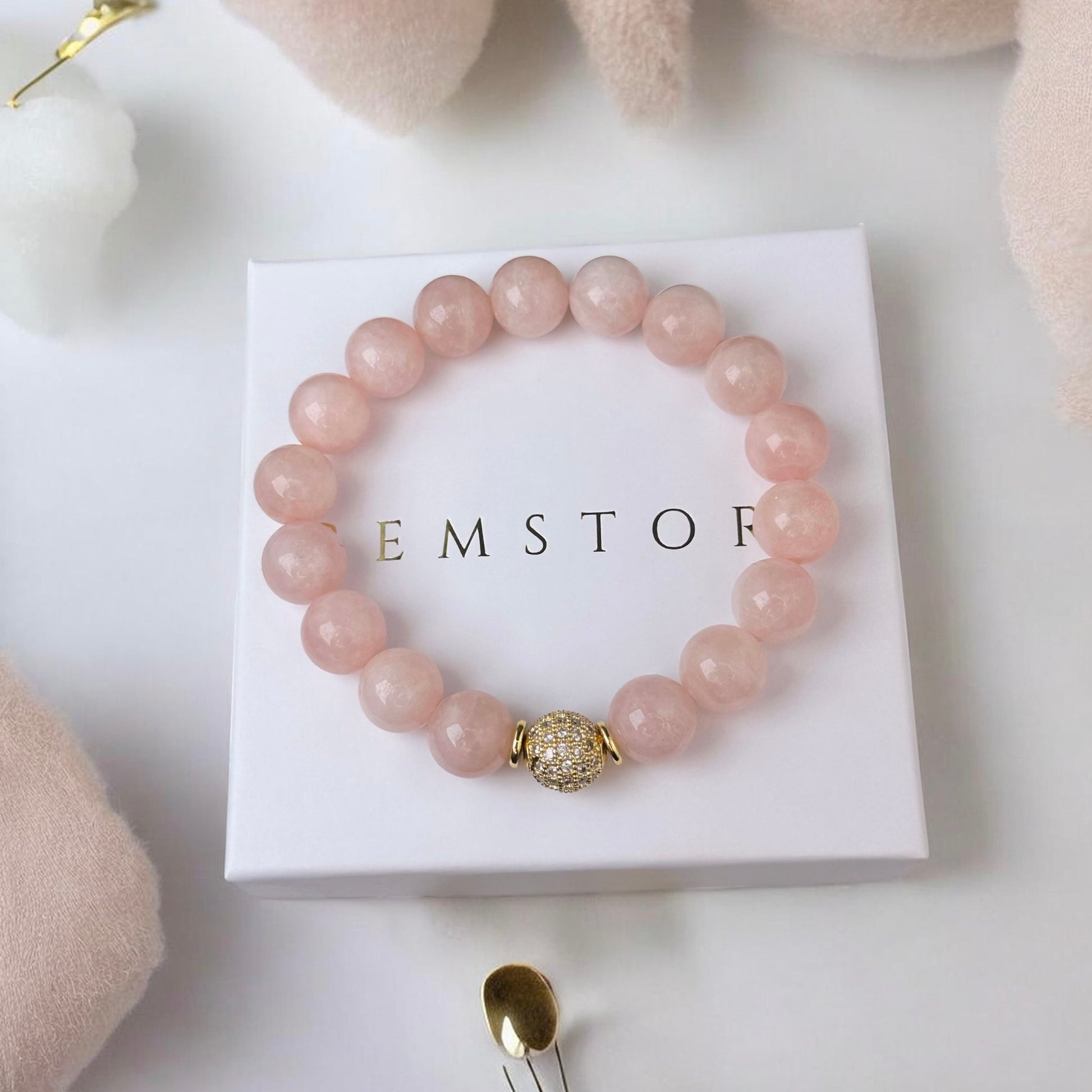 Rozā Kvarca aproce ar dekoratīvu bumbiņu (Rozā Kvarcs, 10mm)
