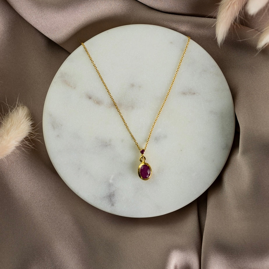 Rubīna kaklarota (Rubīns 5ct ar sertifikātu, Sudrabs 925-apzeltīts, 40-45cm.)