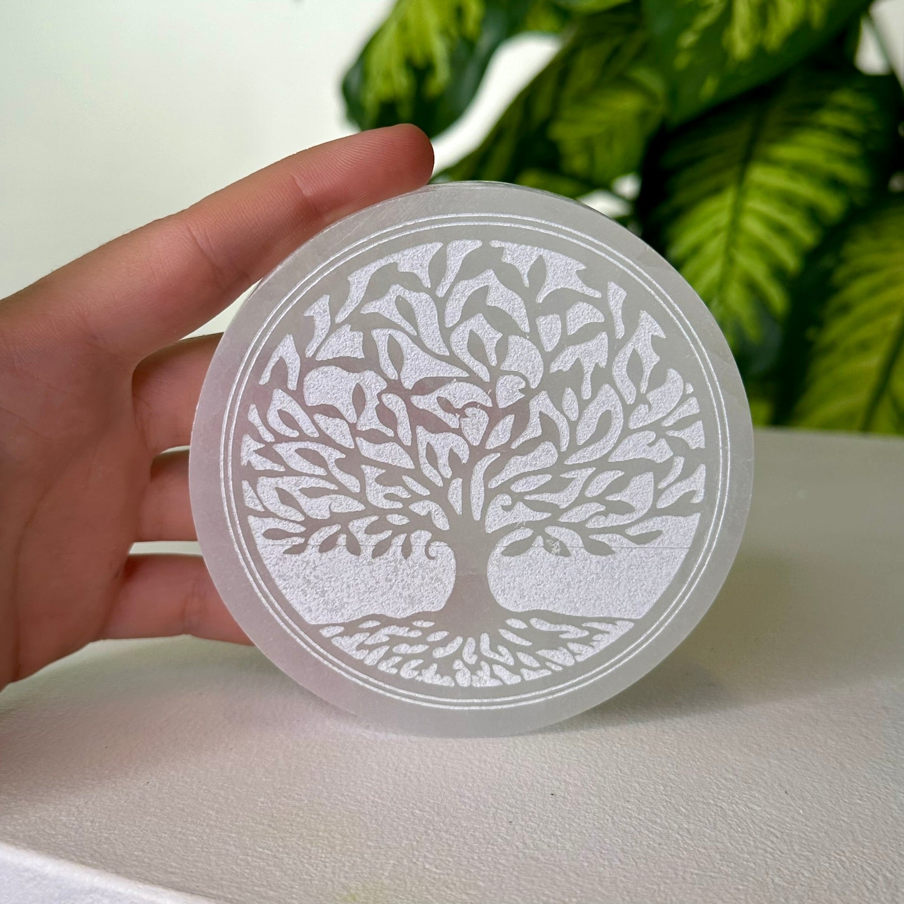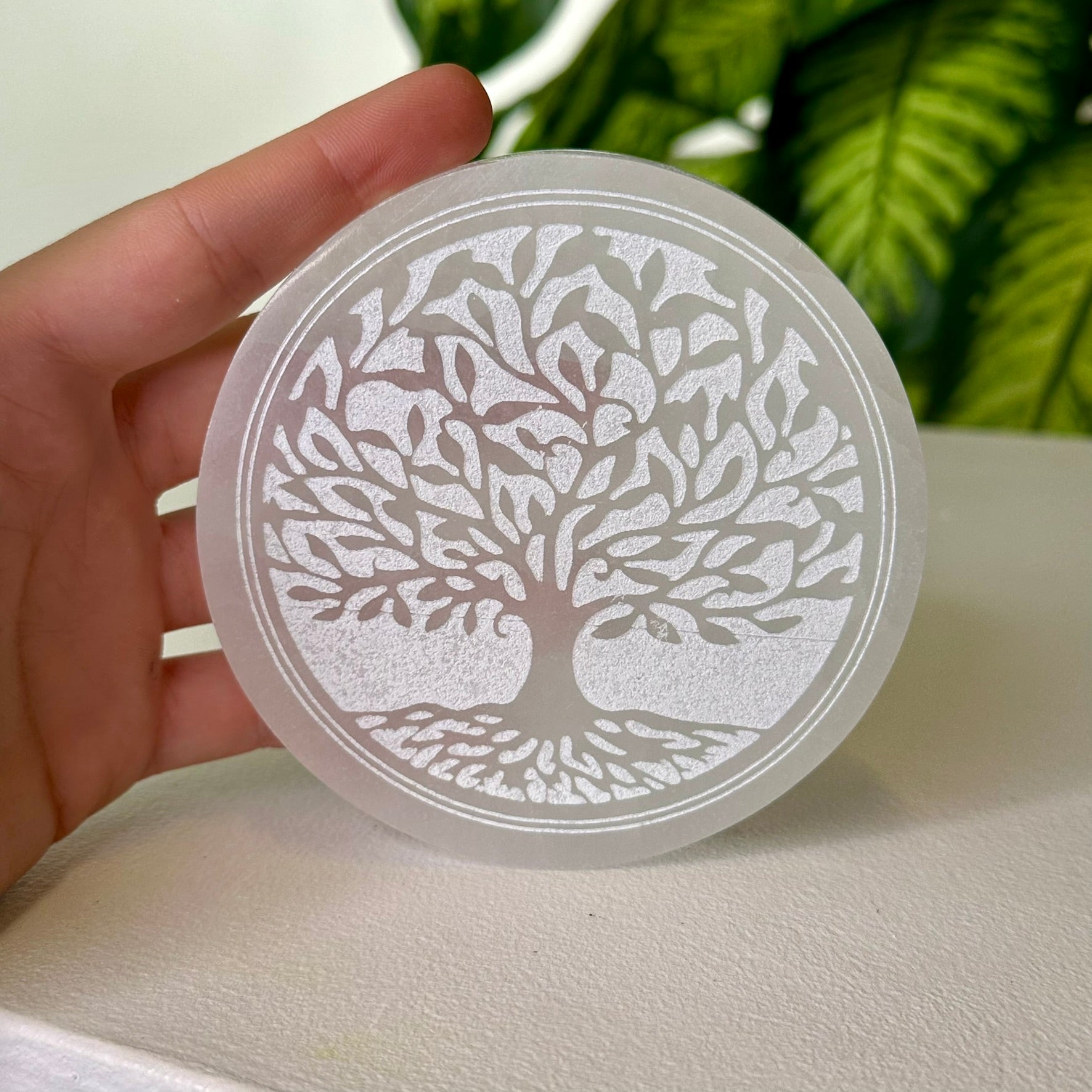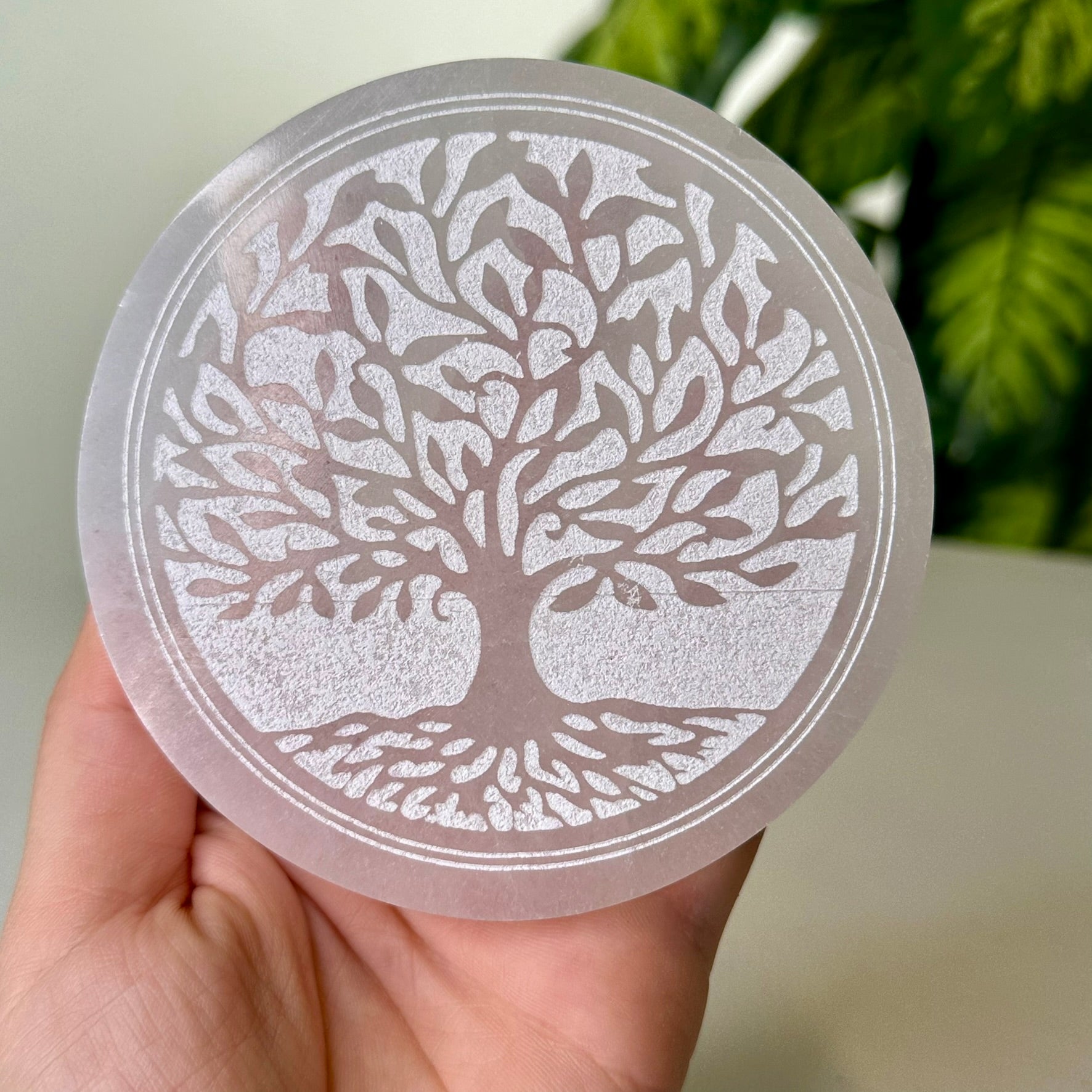 Selenīta uzlādes paliktnis "Dzīvības koks" (Selenīts, ~10.5cm ø)