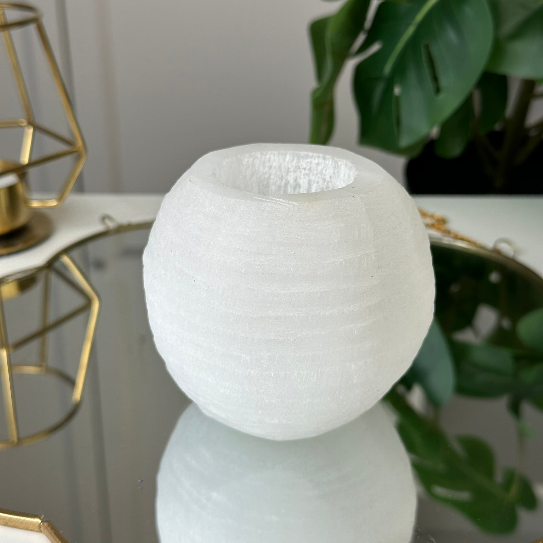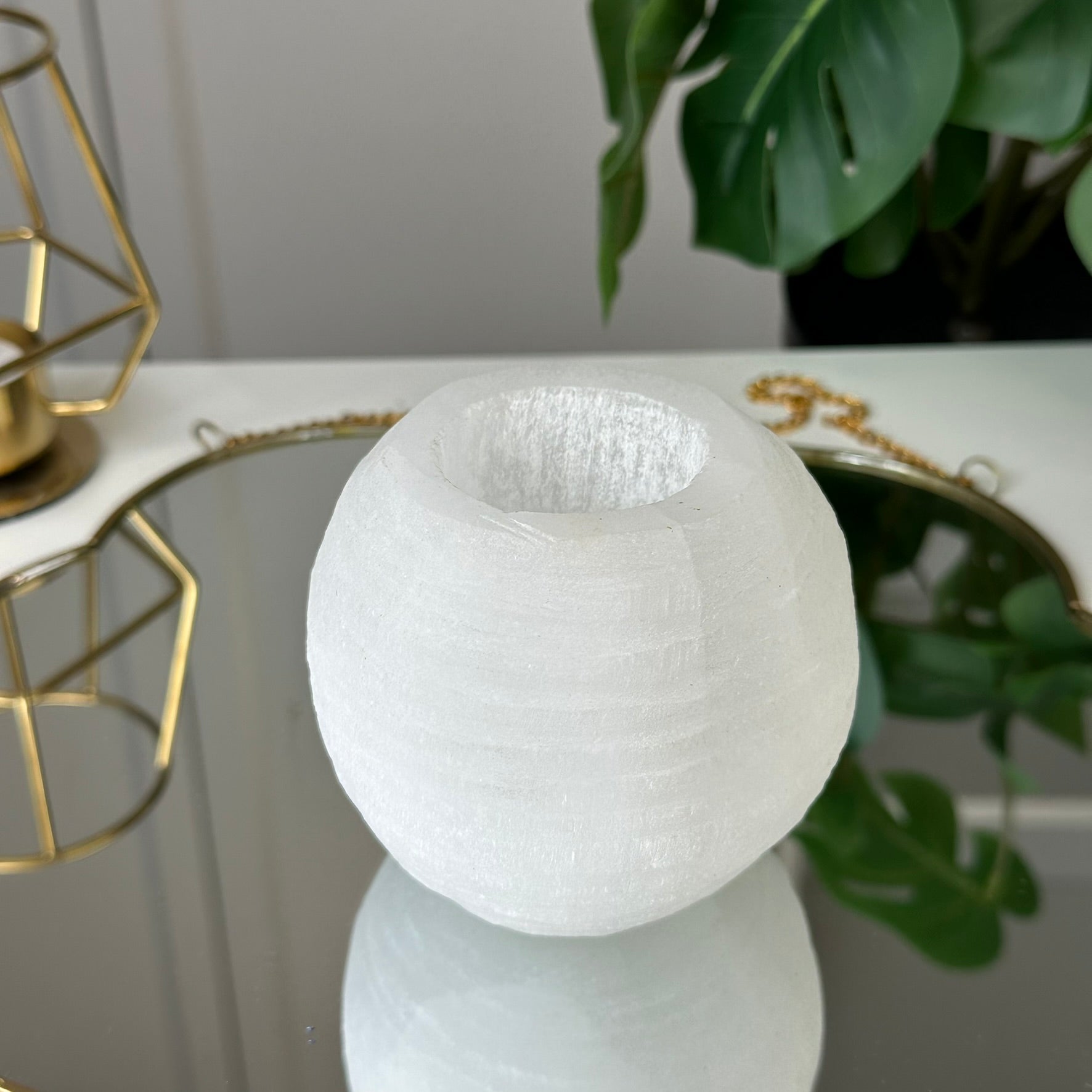Tiks izsūtīts 1 Selenīta svečturis. Tā kā katrs eksemplārs ir unikāls, tas var nedaudz atšķirties no attēlā redzamā.