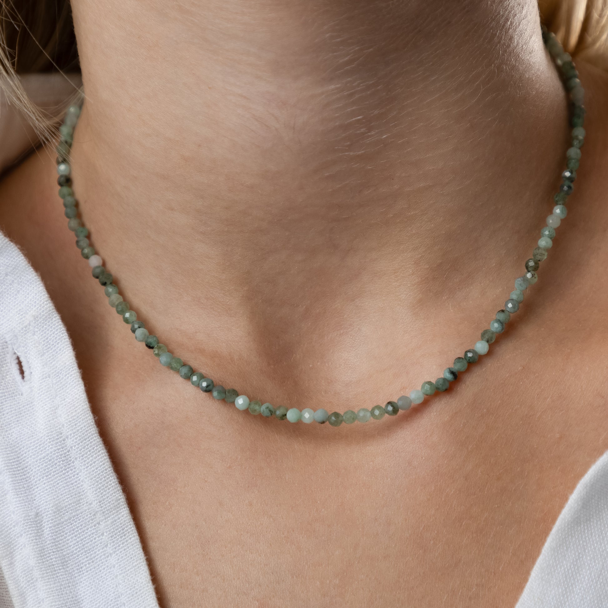 Smaragda kaklarota (Smaragds ar sertifikātu, slīpēta forma, 3mm, 37cm. Aizdare- Sudrabs 925.)