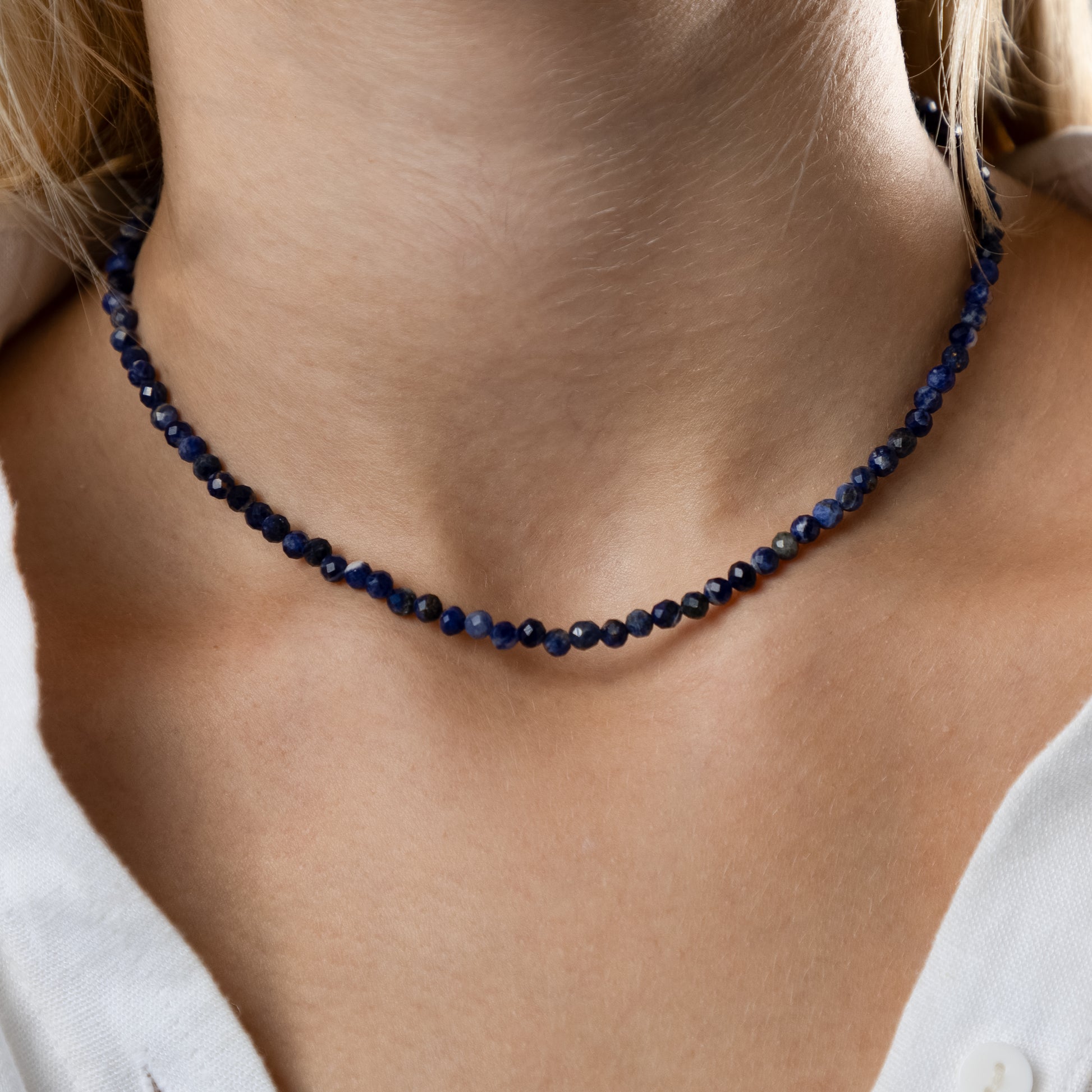 Sodalīta kaklarota (Sodalīts, slīpēta forma, 4mm, 36cm. Aizdare- Sudrabs 925-apzeltīts.)