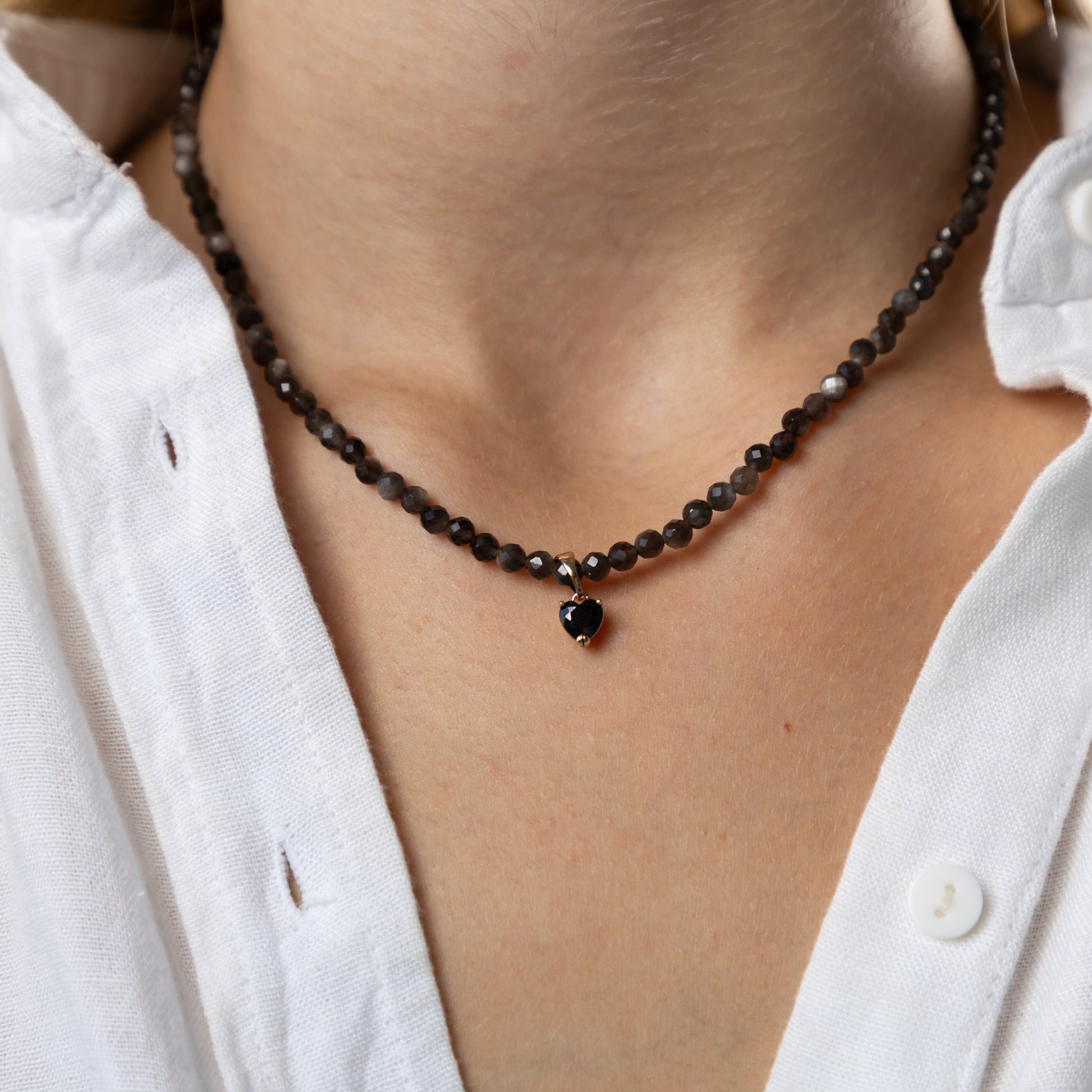 Sudraba Obsidiāna kaklarota ar sirsniņas kulonu (Obsidiāns, slīpēta forma, 4mm, 38.5cm. Aizdare- Sudrabs 925 apzeltīts.)