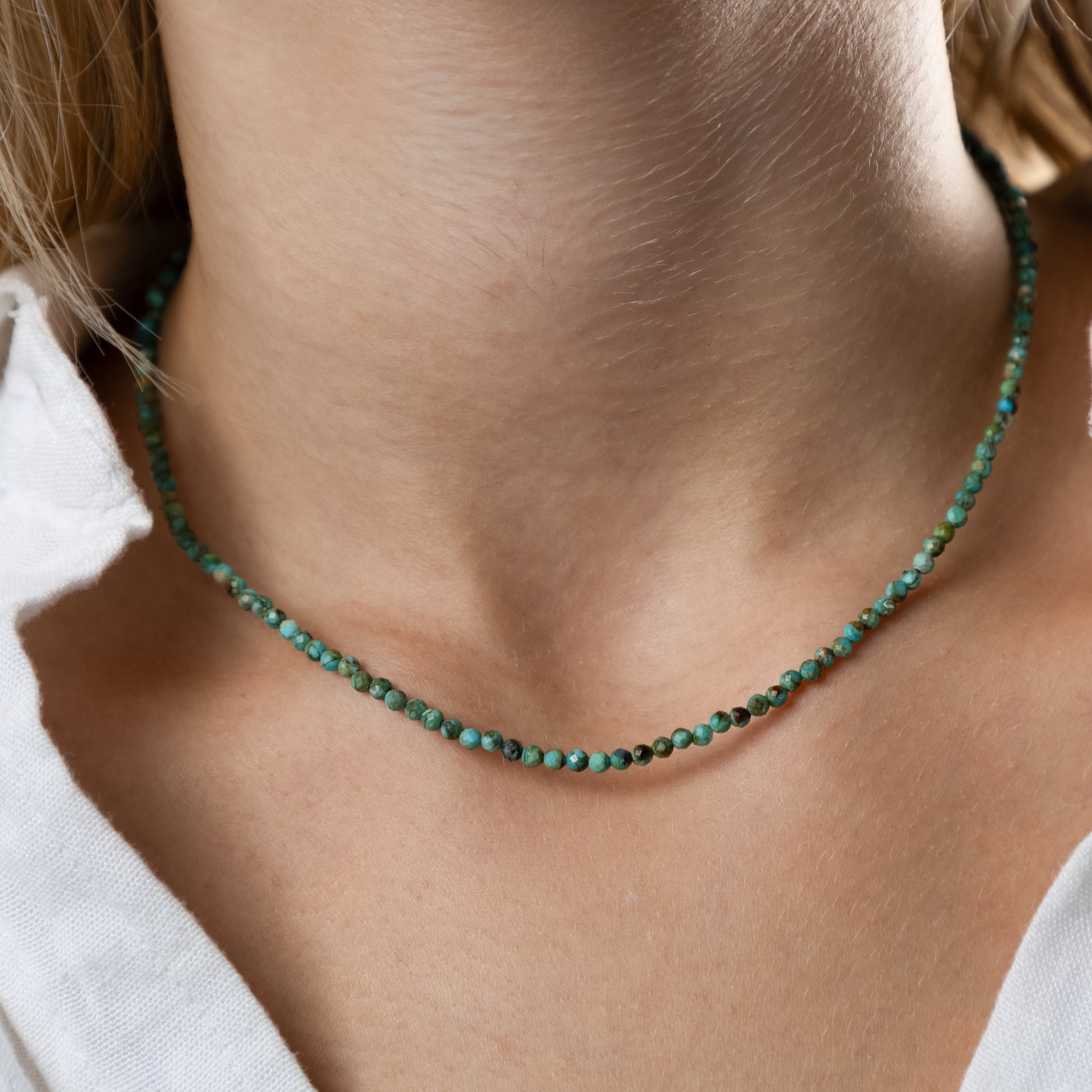 Tirkīza kaklarota (Tirkīzs, slīpēta forma, 2mm, 38cm. Aizdare- Sudrabs 925.)