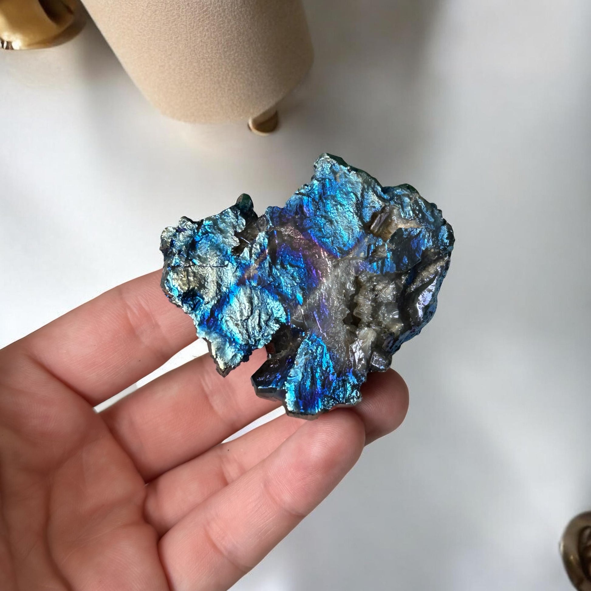 AURA KVARCS- ir dabisks caurspīdīgs Kvarcs, kurš savu mirdzošo krāsu iegūst karsēšanas rezultātā. Kvarca kristāls tiek ievietots uzkarsētā vakuma kamerā un pēc tam kamerā tiek ievadīts iztvaicēts metāls. Tas nogulsnējas uz kristāla virsmas, radot zaigojošu, metālisku spīdumu. Aura kvarca krāsa ir atkarīga no izmantotā metāla veida.