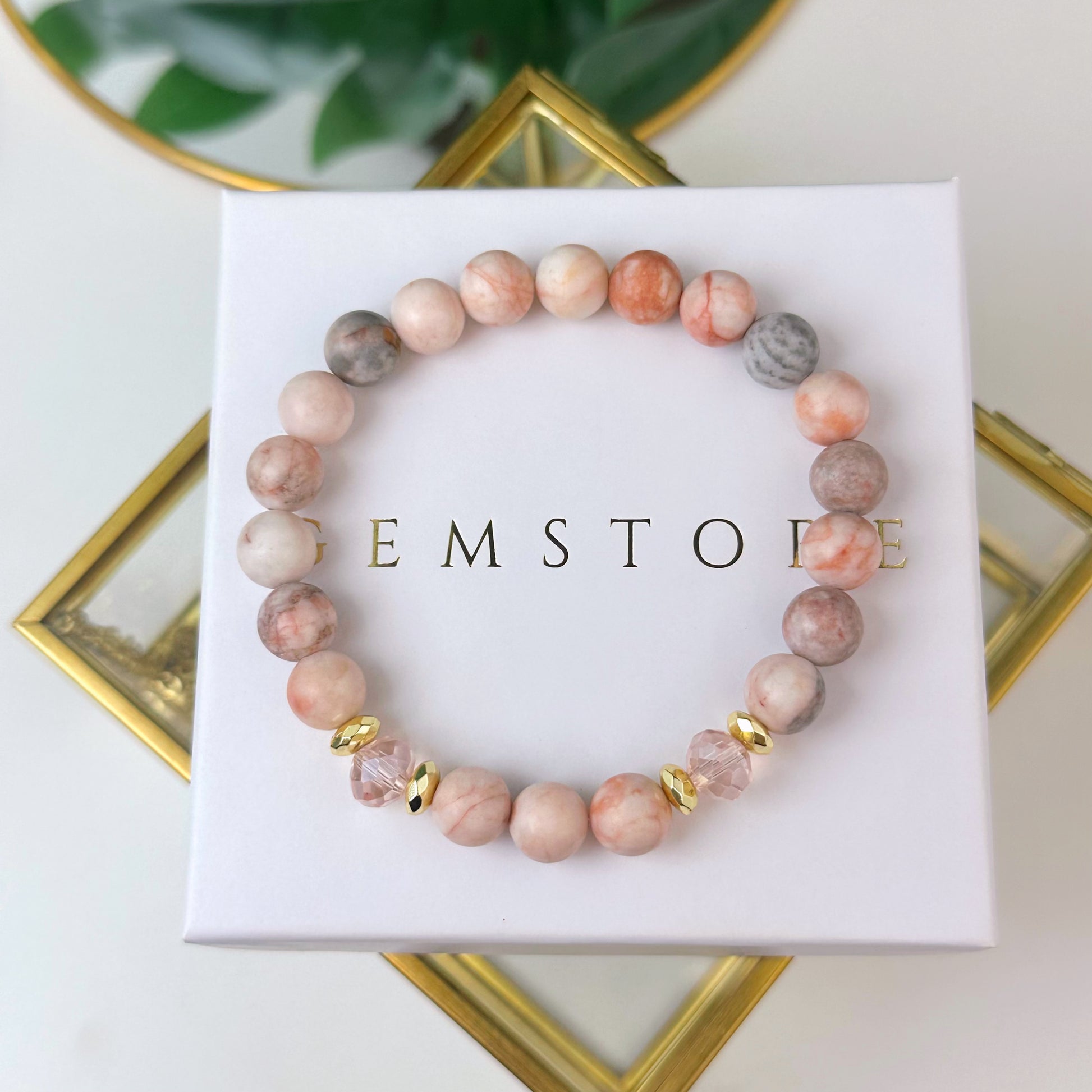 Zebras Jašma aproce ar rozā kristāliem ( Jašma 8mm)